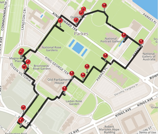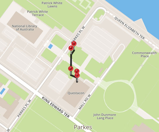 Situated on the eastern side of Questacon is the Questacon Walks of Wonder bench and drop pin, a great photo stop and the start of this featured walk.