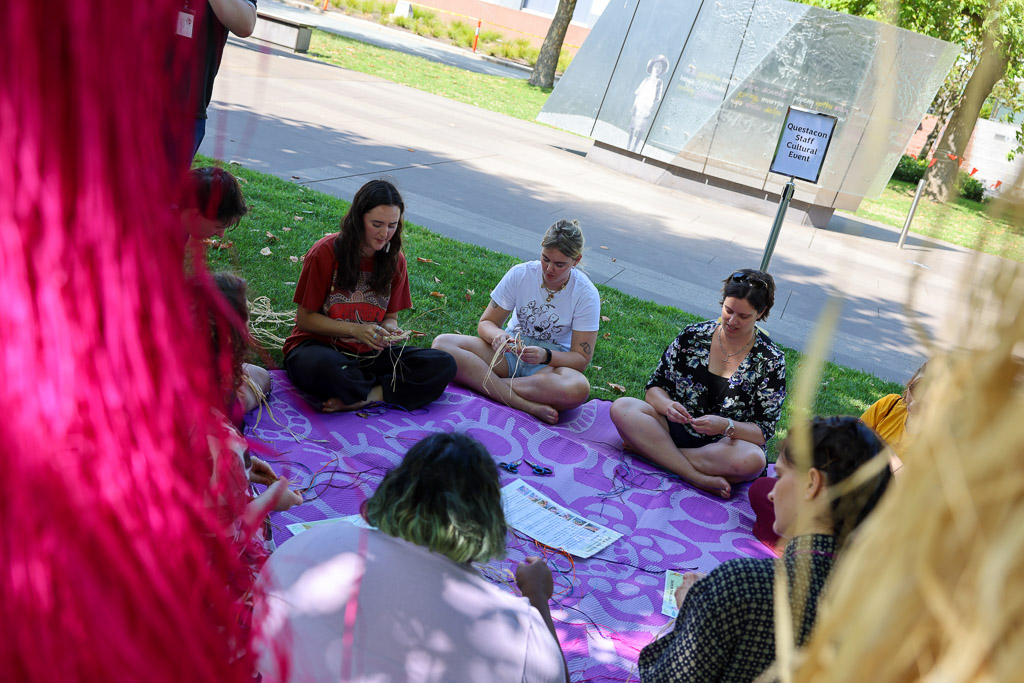 Questacon embraced Tegan’s cultural offering and introduced weaving as an activity in Gallery 5 ‘The Shed’ during National Reconciliation Week. Visitors accustomed to the typically fast-paced Questacon experience, responded positively to the opportunity to slow down and explore the intricate art of weaving.